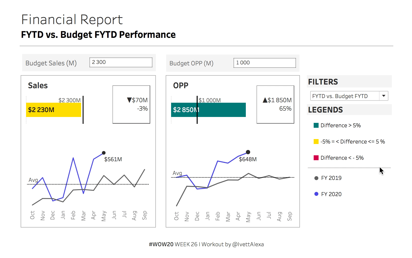 - Allow the user to set the Budget of Sales and OPP in million. Show these parameter boxes only when the FYTD vs. Budget FYTD is selected.
