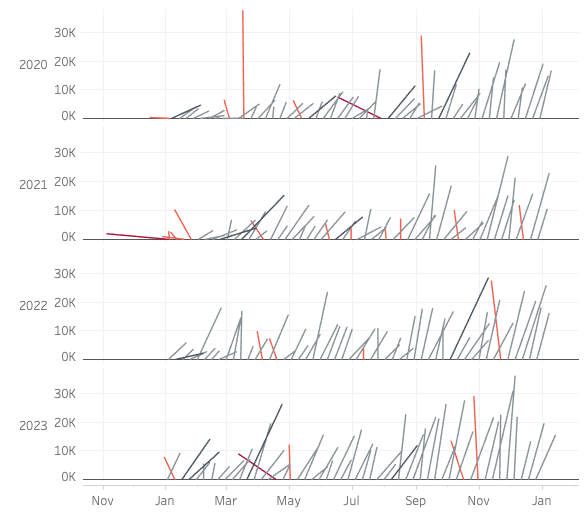 Introduction This is the most common chart I made in Tableau so I thought it would be fitting to share with all of you. Enjoy! Click to open in Tableau Public Requirements Dashboard size: 400 x 200 1 worksheet Show the sales from the most recent full month. Show the percent change from the same month […]