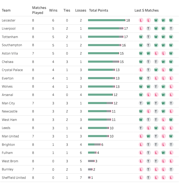 I was scrolling thru my Twitter timeline and noticed a comment by fellow Zen Master Simon Beaumont to #MakeoverMonday co-lead Charlie Hutcheson regarding tables, specifically the kind to track teams and the results of matches in the English Premier League (which are a group of the highest level teams that play football/soccer in England).