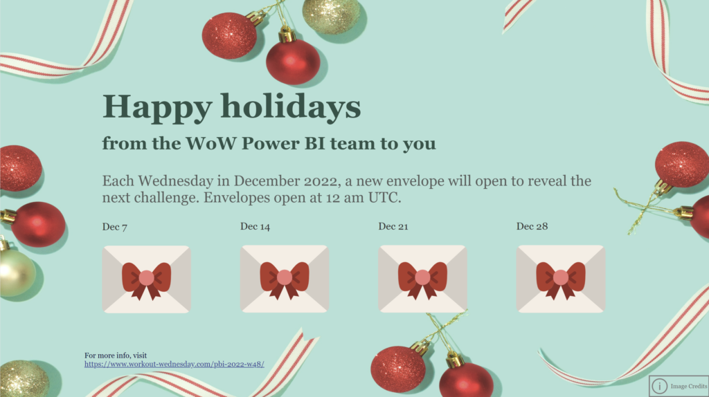 Introduction Welcome back to Workout Wednesday 2022! This week we’re continuing our work with images and building a fun Holiday Song Picker using the Image Grid custom visual in Power BI! We’ll use data from Spotify to help select a song based on Artist, Tempo, or Key. If you’d like to follow along with the […]