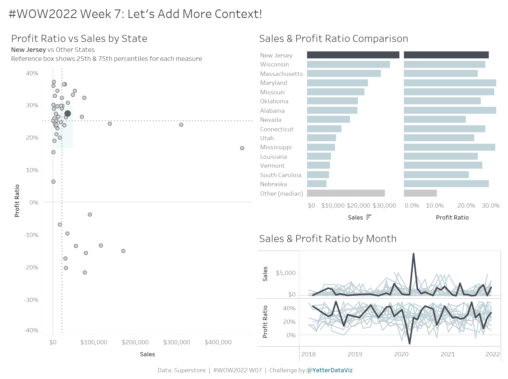 This week is our third installment of this month’s “dashboard series” so we’ll be building upon Erica’s challenge from Week 5 and Sean’s challenge from Week 6. If you’ve done Week 6, you can start from that, or you can check out those challenges linked above and come back to this when you’re done…or you can grab a starting point here.