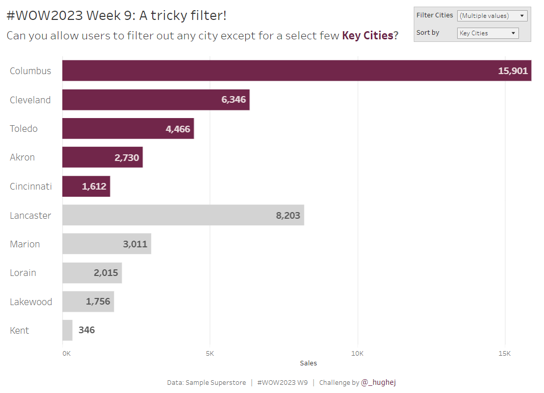 Bonus: - Give the user the ability to sort by “Key City” vs other, or sort by Sales