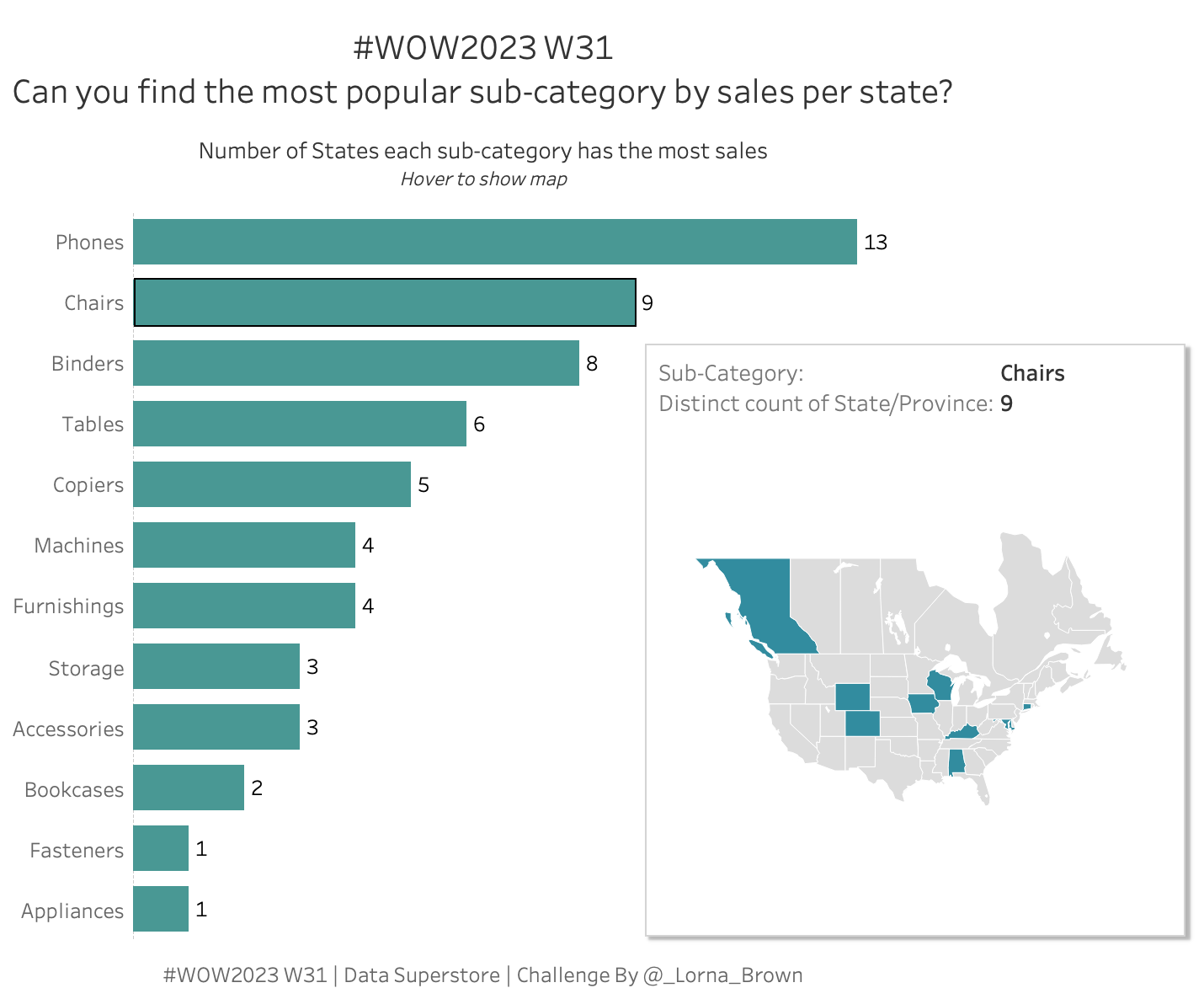 - Create a Viz in Tooltip to show which states that sub-category is most popular in