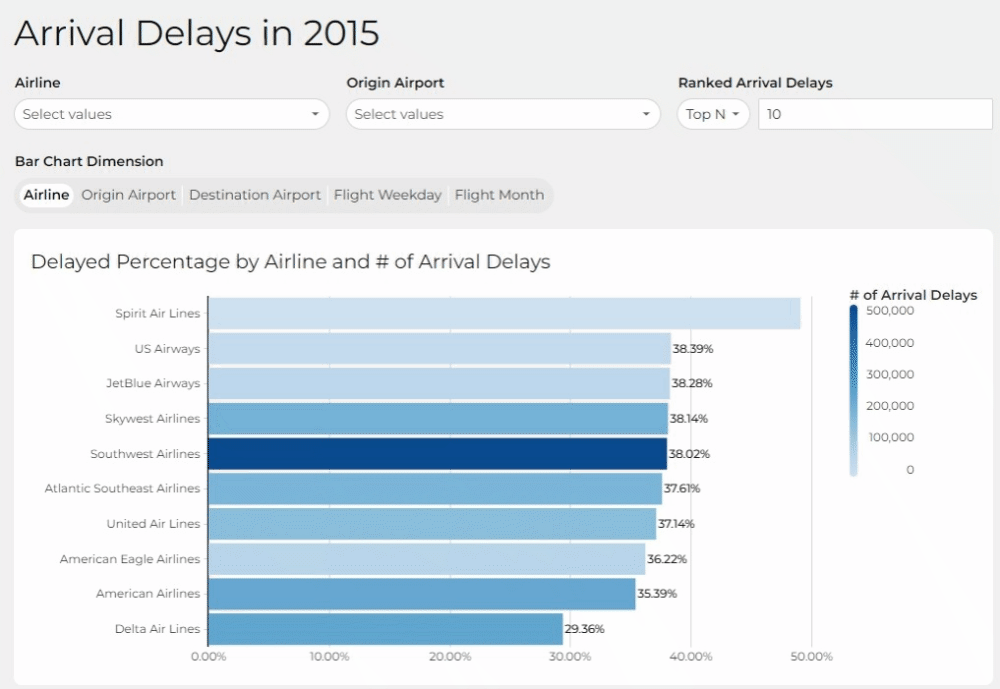 - Sort the Bar Graph by Delay Percentage descending