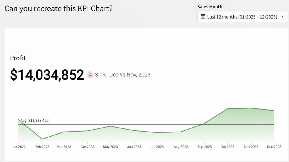 This challenge is easier than last week, and is meant to show how quickly Sigma can perform period over period analysis on any KPI.