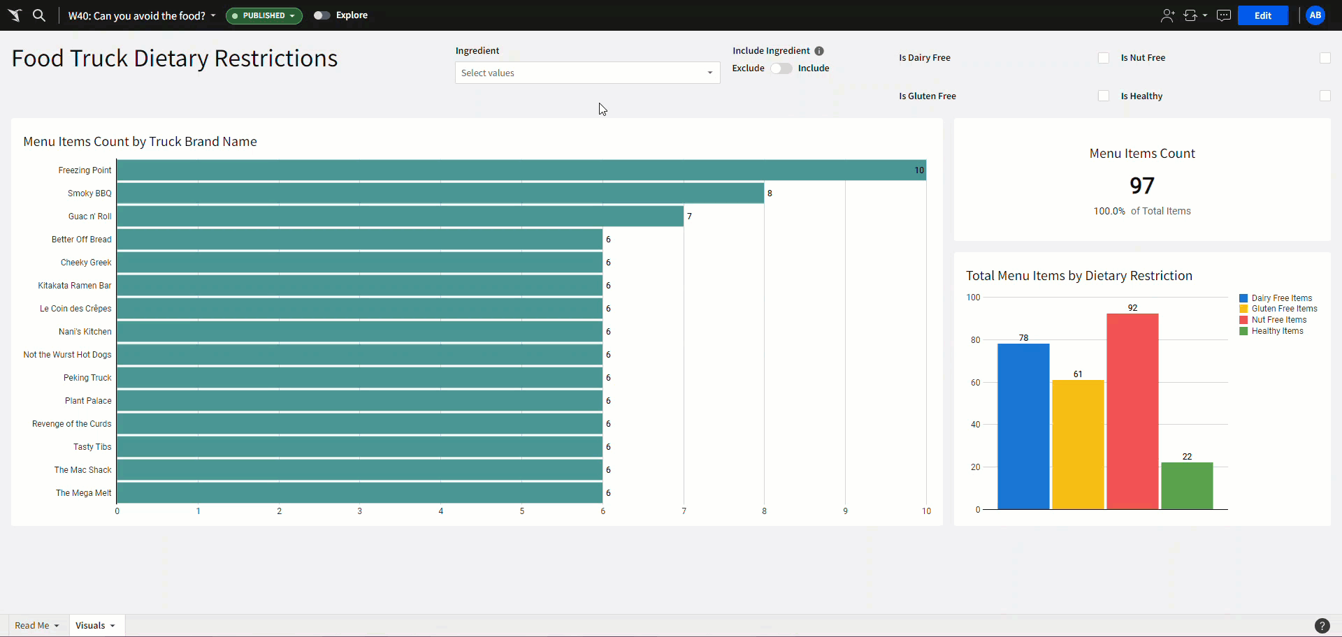 - Arrange your elements into a cohesive dashboard. Don’t forget to move the Ingredients page control to the visible page!
