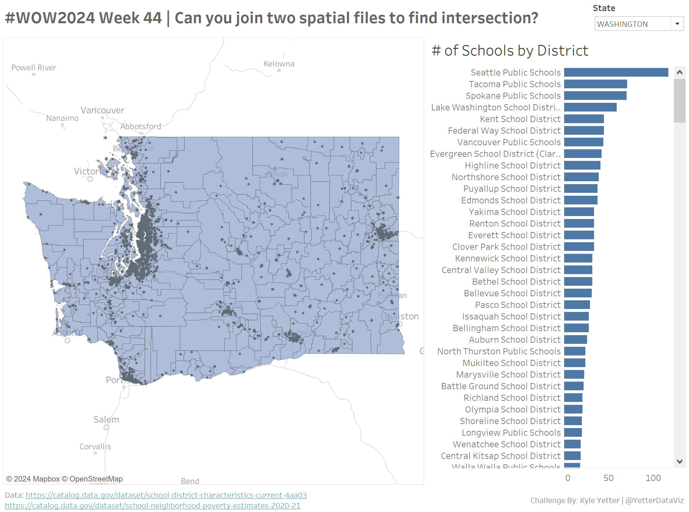 - Create a filter for the State (school_district.Statename) to just look at one at a time
