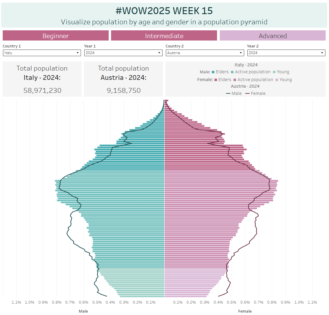 So, when Erica asked if I’d like to design a challenge for Community Month, I immediately thought of a population pyramid, one of my signature vizzes!