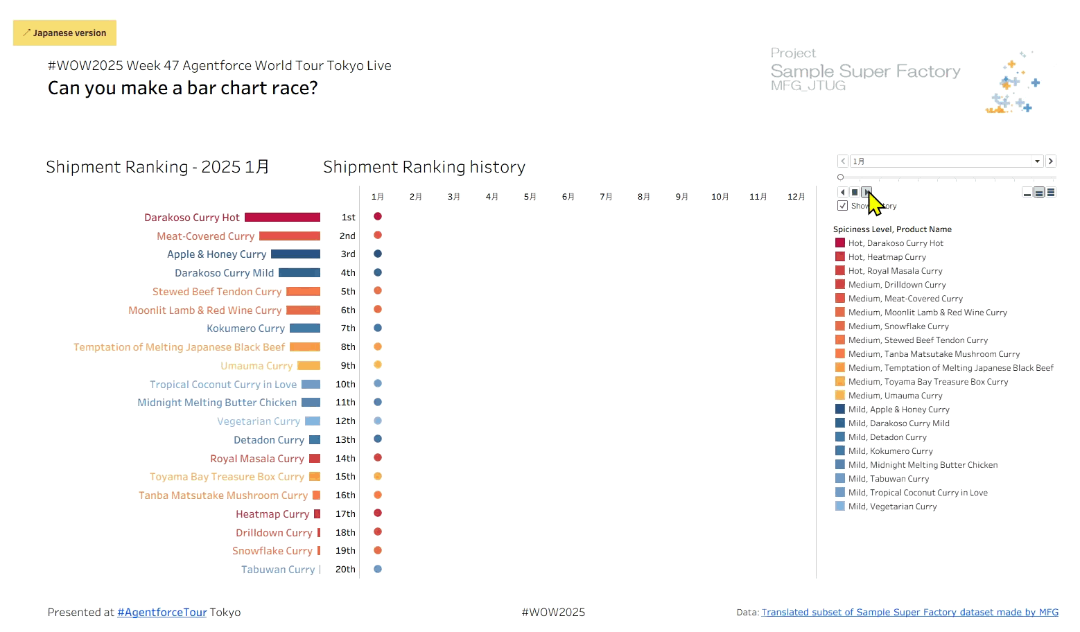 We are using the Sample Super Factory dataset, an educational dataset for the manufacturing industry, created by the Japan Tableau User Group for Manufacturing (MFG JTUG @mfg_tug_jp).