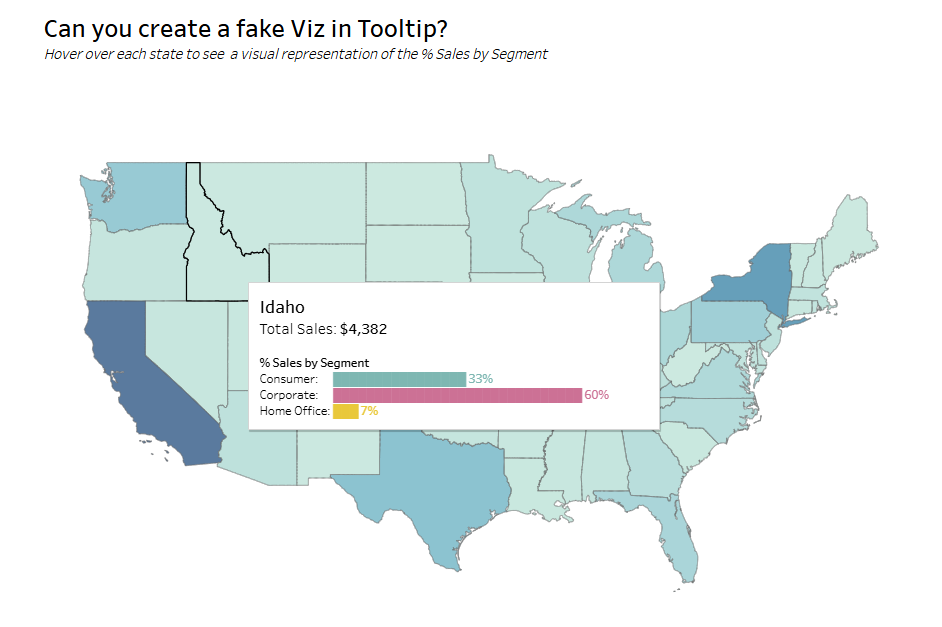- Add a fake Viz in Tooltip that displays the % Sales per Segment in each state as a bar chart