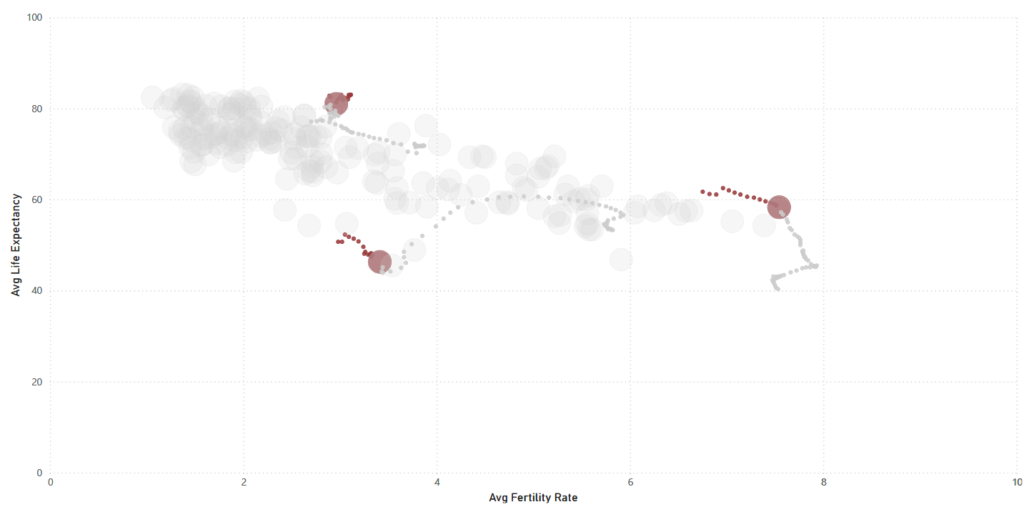 2024 Week 27 | Power BI: Scatter plot showing the path of selected data points