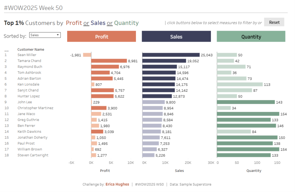 #WOW2025 | Week 50 | Top 1% of Customers by Profit OR Sales OR Quantity